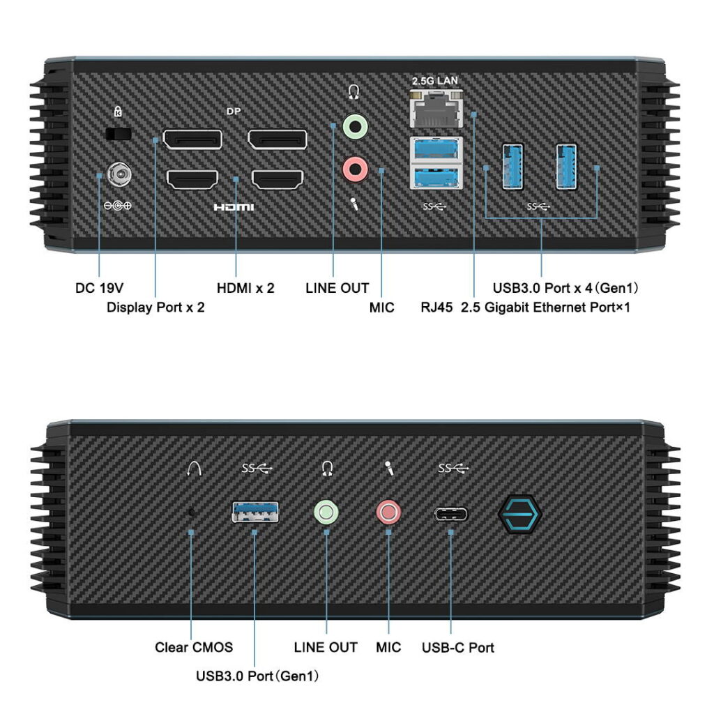 - 【Interfacce multiple e rete rapida】Il mini PC UM690L Slim dispone di diverse interfacce, tra cui 2 USB 3.2 Gen2 Type-A, 2 USB 2.0, 1 porta USB4 (supporta Alt PD), 1 HDMI, 1 DisplayPort, 1 audio. Interfaccia e pulsante Clear CMOS. La porta di rete cablata WLAN 2.5G, dotata di una scheda di rete wireless Wi-Fi 6E/BT5.2, offre una connessione di rete stabile e una velocità di trasmissione rapida.
