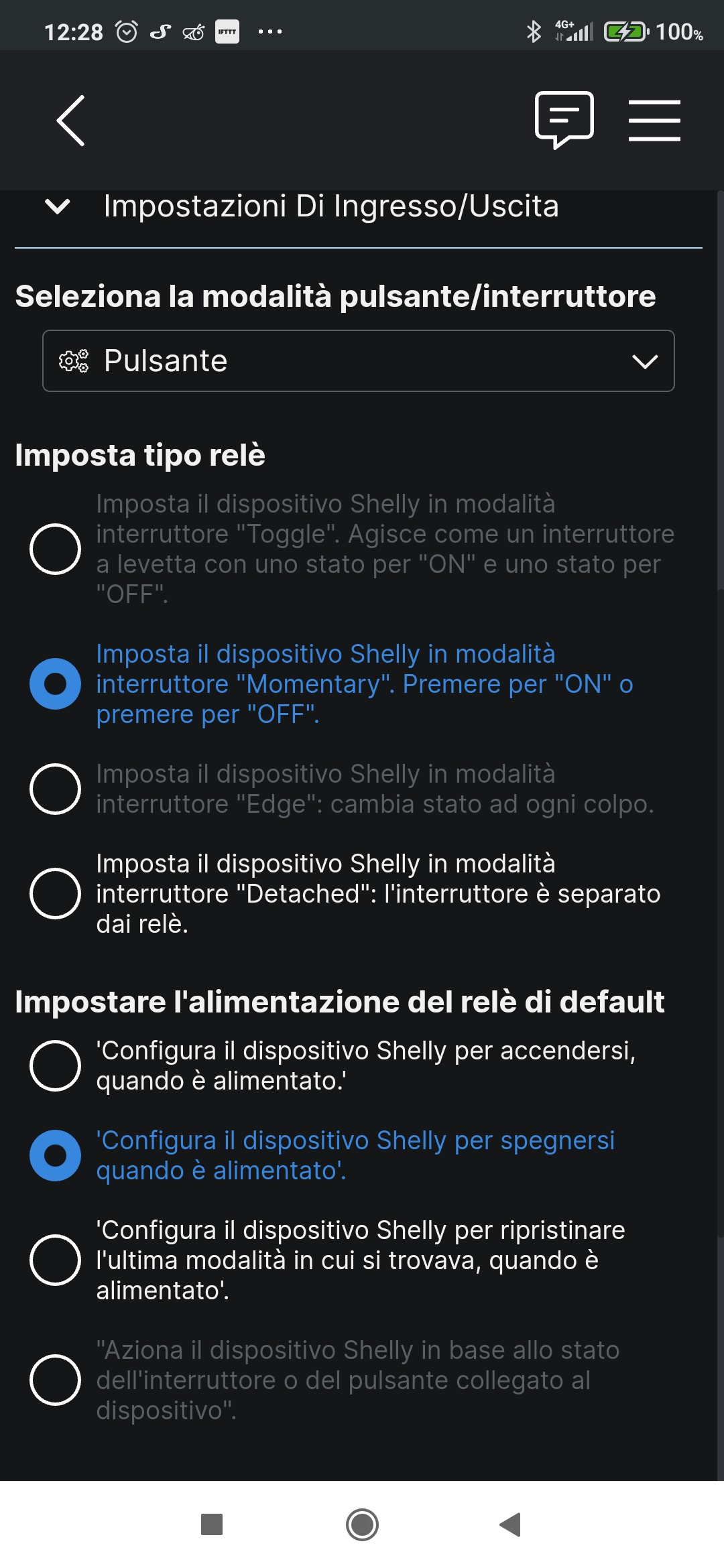Mi soffermerei comunque sulle configurazioni più importanti nella maggior parte delle applicazioni pratiche dello Shelly 1 Plus.