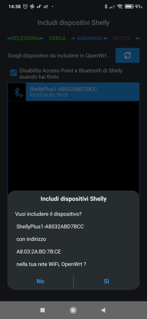 A differenza dei device di generazione precedente, lo Shelly 1 Plus utilizza per l’accoppiamento la connessione Bluetooth rendendo il processo molto più affidabile e semplice.